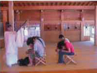 今日はかなりおもろい日。朝そのパチンコ屋さんの駐車場で目をさますと一路福島目指して出発。天気は晴れ、ようやく梅雨前線の下に来れたのか夏ですよ。セミの鳴き声、入道雲。くるりのハイウェイなんて口ずさんでいるものも。昼にはまたまた腹が減ったの大合唱。うまいものが食いたい、外食したいの一点張り。何が食いたいのか聞くと、口をそろえて「マック!!」。マックってマクドナルドですか?地方の上手いもんを食いたかったんじゃ...。普段の食生活が貧しすぎて発想の飛躍がないんです、俺たち。それから途中ででかそうな神社、竹駒神社のサインを発見、バスで乗り付けるとなんと車のお祓いもあるじゃないですか??今までの転倒事故、降り続ける雨、どれもこれも厄払いがすんでいなかったからなのか?俺たち瞬時にそう理解し、お祓いを受けることに。神主さんのもとまずは神社内で全員お祓いの儀式。途中でマットの野郎が吹き出しやがって全員頭を下げながら横隔膜痙攣!不謹慎すぎます。その後は外でバスのお祓い。神社に輝く銀色のダブルデッカー、これこそ真の和洋折衷、真の融合、かっこよすぎます。イギリス人が見たら泣いて喜ぶオリエンタルルック!全員で写真を撮りまくり、しかも恥ずかしがる神主さんを無理矢理バスの前に立たせて大撮影隊会。気のせいか神主さんの頬は赤く染まっておりました。「このバスはこれでバッチグー」の神様認定を受けもう怖いもんはありません。爆走を続けるバスでコンビニに立ち寄るとそこでコギャル風の女の子二人組を発見。早速ブラジルの種馬アキラが話しかけると驚愕の事実が!彼女達仙台から福島のビーチまで歩きで旅行しているらしい。以下SEE